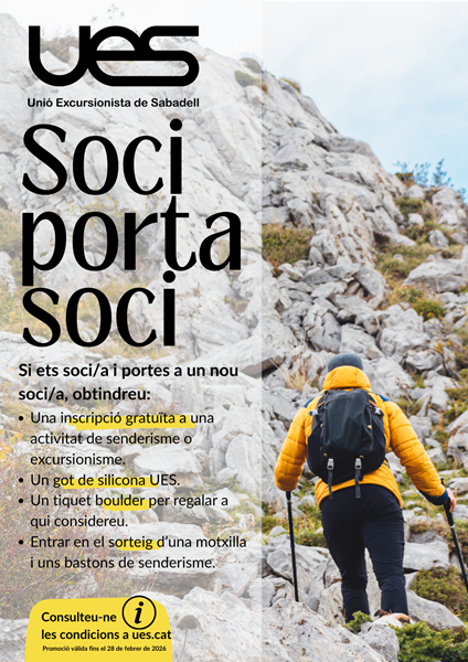 - El sorteig de la motxilla + bastons tindrà lloc el 2 de març de 2026 i es comunicarà directament al soci/a guanyadora/a. Aquest sorteig també inclou les altes de nous socis/es.