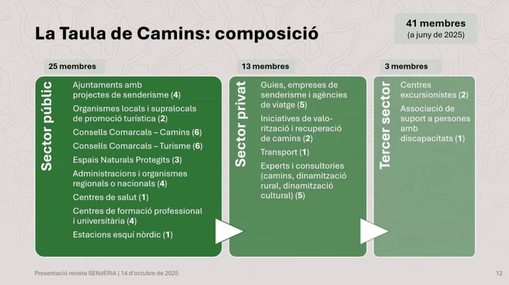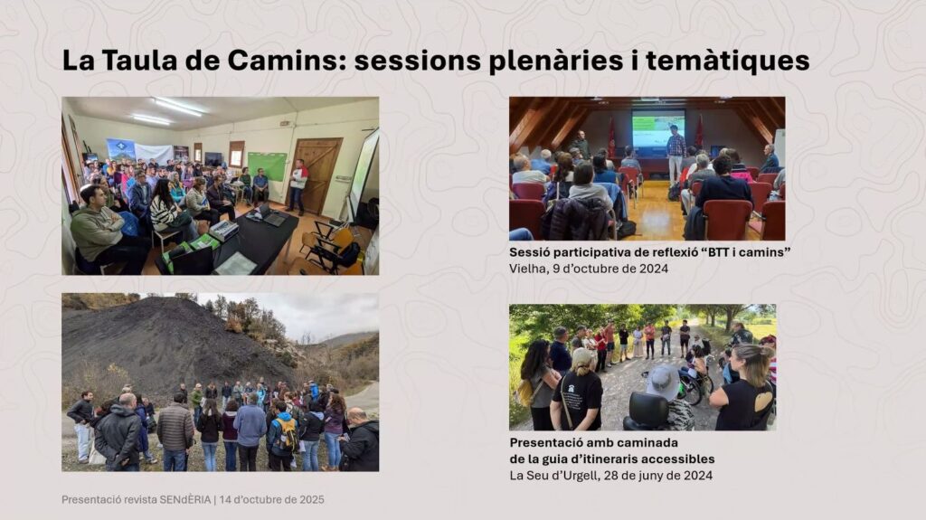 Els convidats van acabar la seva exposició amb la descripció de la Taula de Camins: la seva composició, les sessions plenàries i temàtiques, els àmbits de treball, els projectes executats i les publicacions.