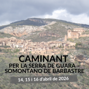 La Serra de Guara, al prepirineu aragonès i dins la comarca del Somontano, és un espai natural de gran bellesa i contrastos. Declarat Parque Natural de la Sierra y los Cañones de Guara, aquest territori és conegut pels seus espectaculars congostos, barrancs i formacions rocoses modelades per l’aigua i el temps. Els seus rius, com el Vero o l’Alcanadre, han creat un paisatge únic que combina natura salvatge, pobles medievals i una rica biodiversitat mediterrània i de muntanya. El Somontano és també terra de vins i olis d’alta qualitat, amb una forta identitat cultural i gastronòmica. Ens allotjarem a l’Hotel Clemente de Barbastre, un punt de partida ideal per descobrir aquesta regió plena de vida i autenticitat.