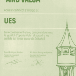 La plataforma Vàlua, associació que agrupa entitats socials de Sabadell compromeses amb una societat més justa, cohesionada i inclusiva, ens ha atorgat el certificat de reconeixement pel nostre compromís amb la igualtat d’oportunitats i el suport a les entitats del tercer sector de la ciutat.