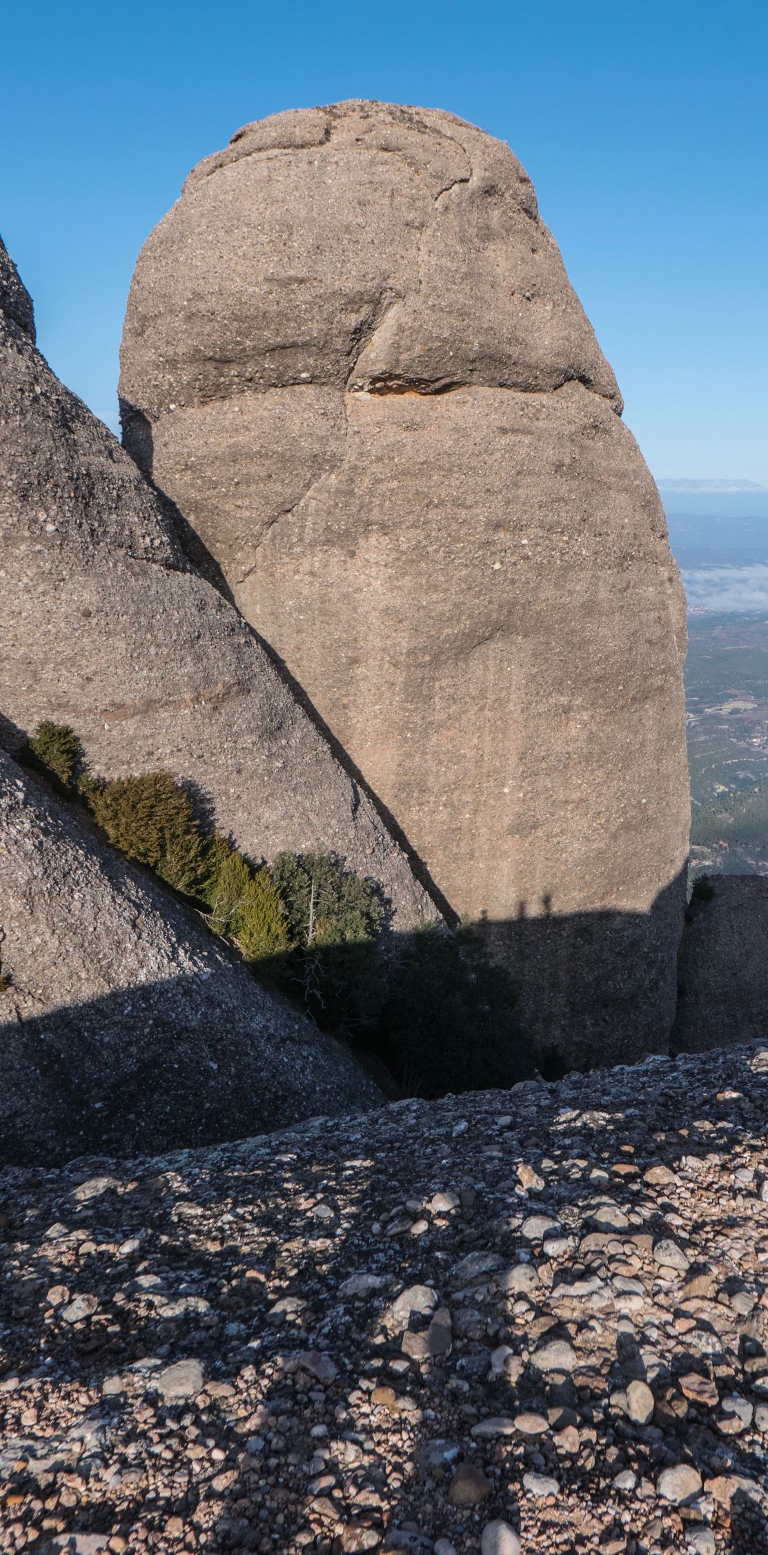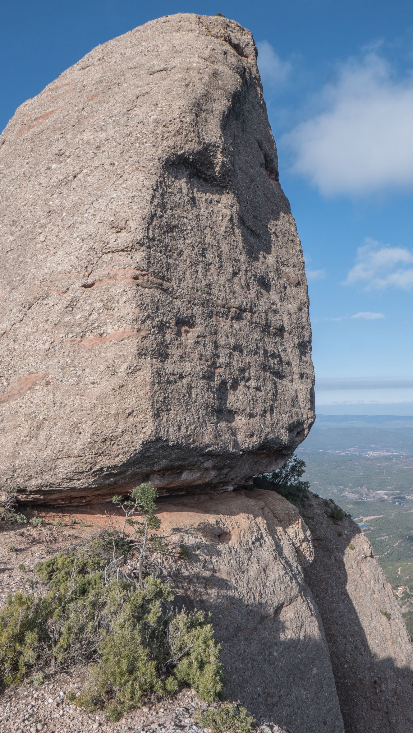 És una grimpada fàcil i sense exposició (hi ha una corda per ajudar) i un arbre a l’esquerra que ens permet arribar fins dalt de l’Esfinx, la panoràmica és impressionant.