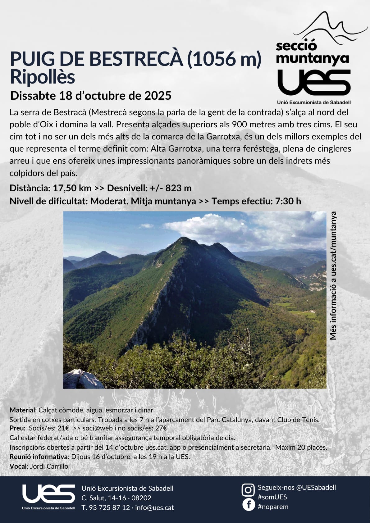 Per contactar amb nosaltres pots enviar un correu a l’adreça de la secció muntanya@ues.cat o bé trucar a la UES (Telèfon: 93 725 87 12).