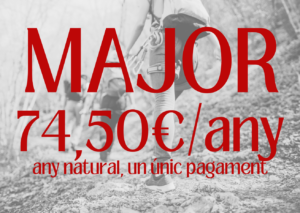 Totes les nostres activitats són obertes a socis/es i a no socis/es. Però si esculls la quota de soci/a major, tindràs descompte en totes les nostres activitats, podràs participar en activitats gratuïtes, tindràs preferència en les inscripcions, fer ús de les nostres instal·lacions, i formar part d’aquesta gran comunitat de socis i sòcies que estimem i gaudim la muntanya.