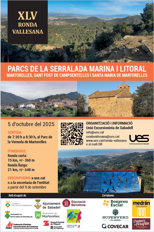 Del 9 de setembre al 2 d’octubre, presencialment a la secretaria de la entitat o a ues.cat (inscripcions)